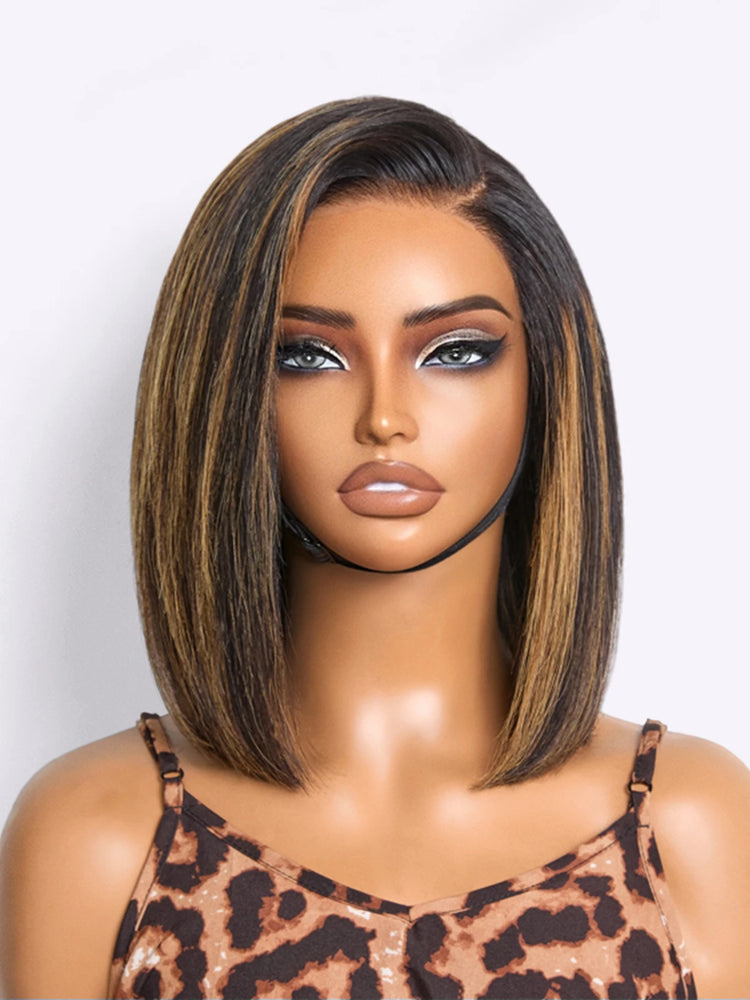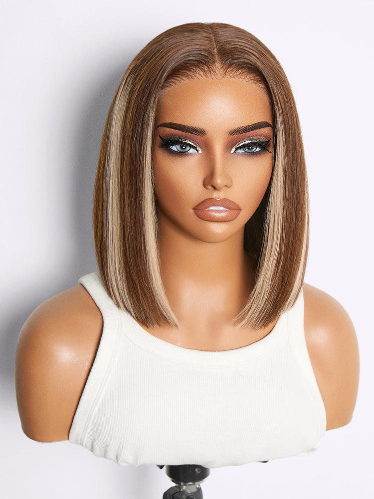 Blonde Highlight / Brown Highlight Short Layered Bob Wig Glueless 5x5 Closure Pre-Cut Lace Wig