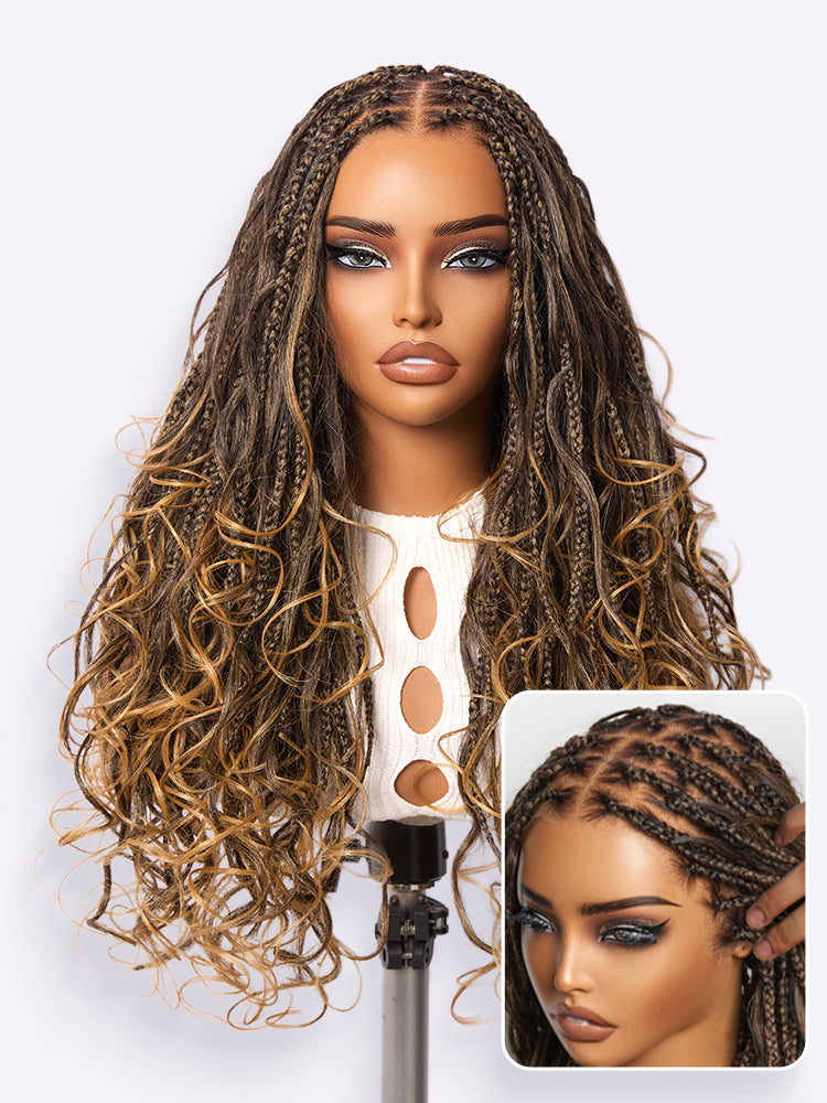 Readitress™ Ombre Honey Blonde French Curl Knotless Boho Braids HD Full Lace Long Wig Flexi Fit Invisi Drawstring Cap - US Only