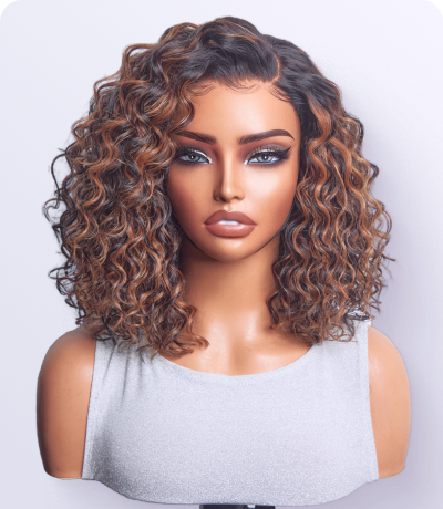 Luvme All-Day Comfort™ Wig Brown Highlight Deep Wave Glueless Minimalist HD Lace Curly Wig Pre-Cut Lace