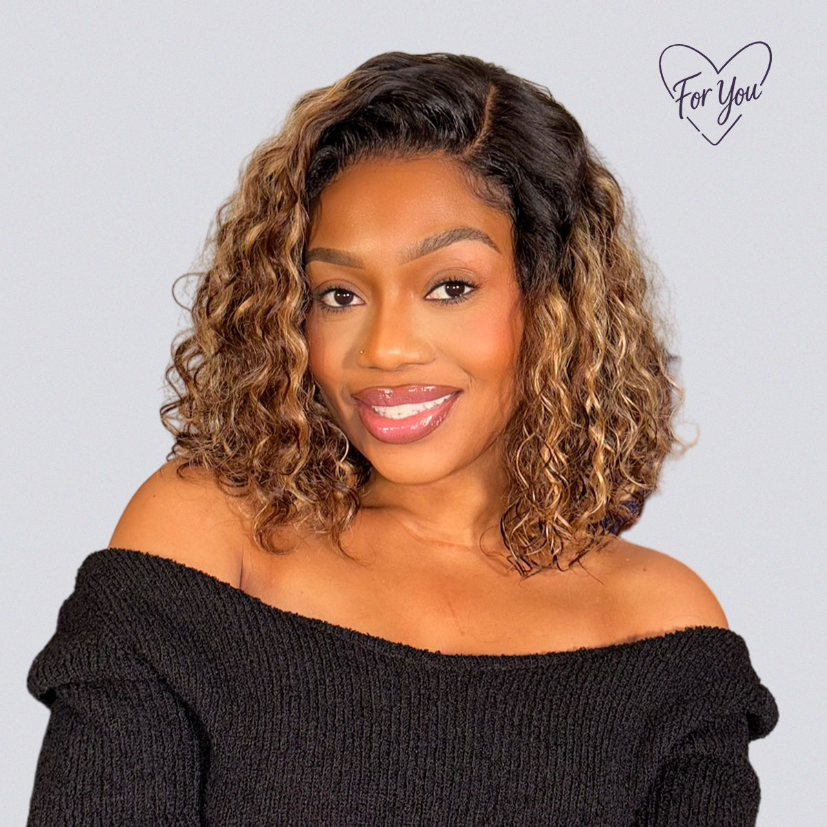 Ready to Go Blonde Highlight / Natural Black / Ombre Brown Water Wave Short Curly Bob Wig Glueless Minimalist HD Lace Wig Pre-Cut Lace