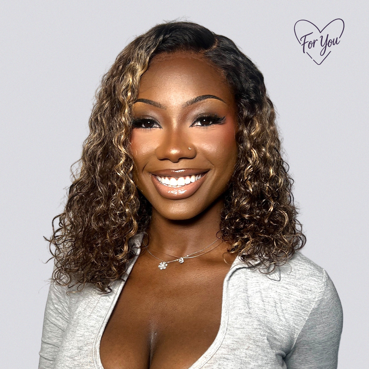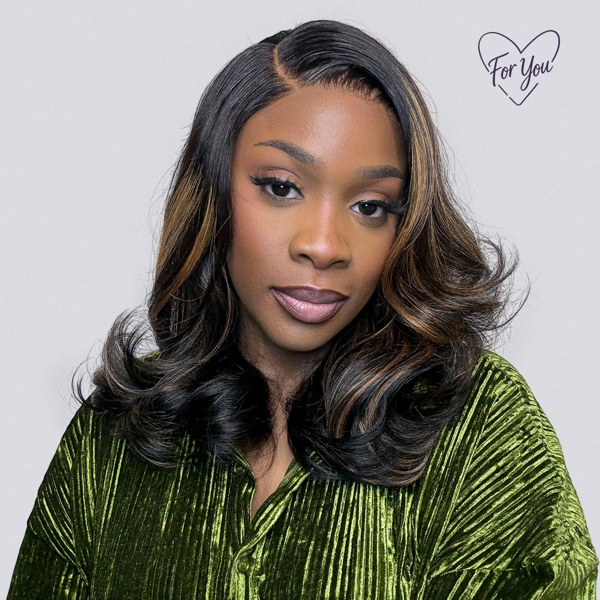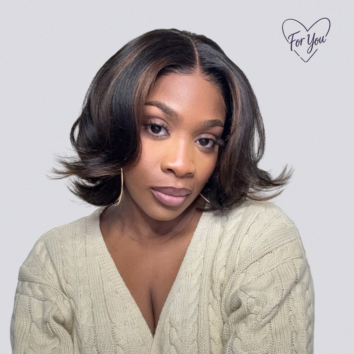 Flirty layered bob with blonde highlights that pops on date night. 5x5 HD lace for a natural part and a secure, all-size fit.