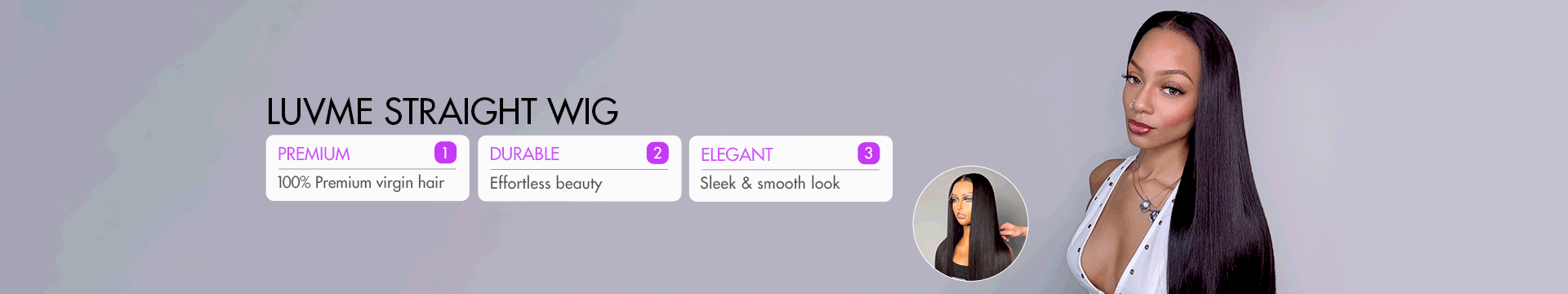 Our 22 inches straight wigs create sleek, blunt lines midway down the back. The elongating length is perfect for formal events and special occasions. Silky and manageable.