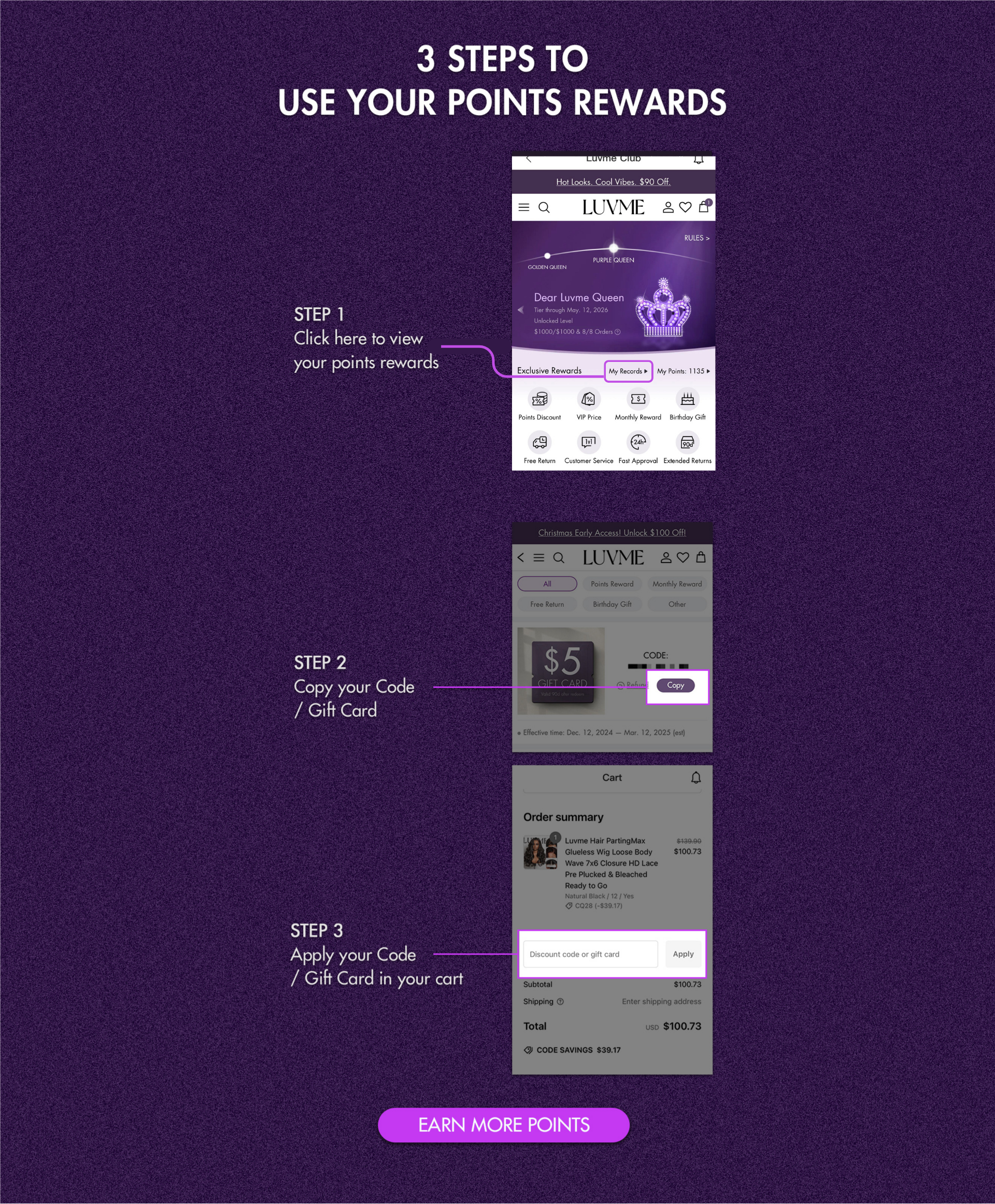 Dear Queen, you have received the reward. For any issues, please feel free to contact us at customercare@luvmehair.com