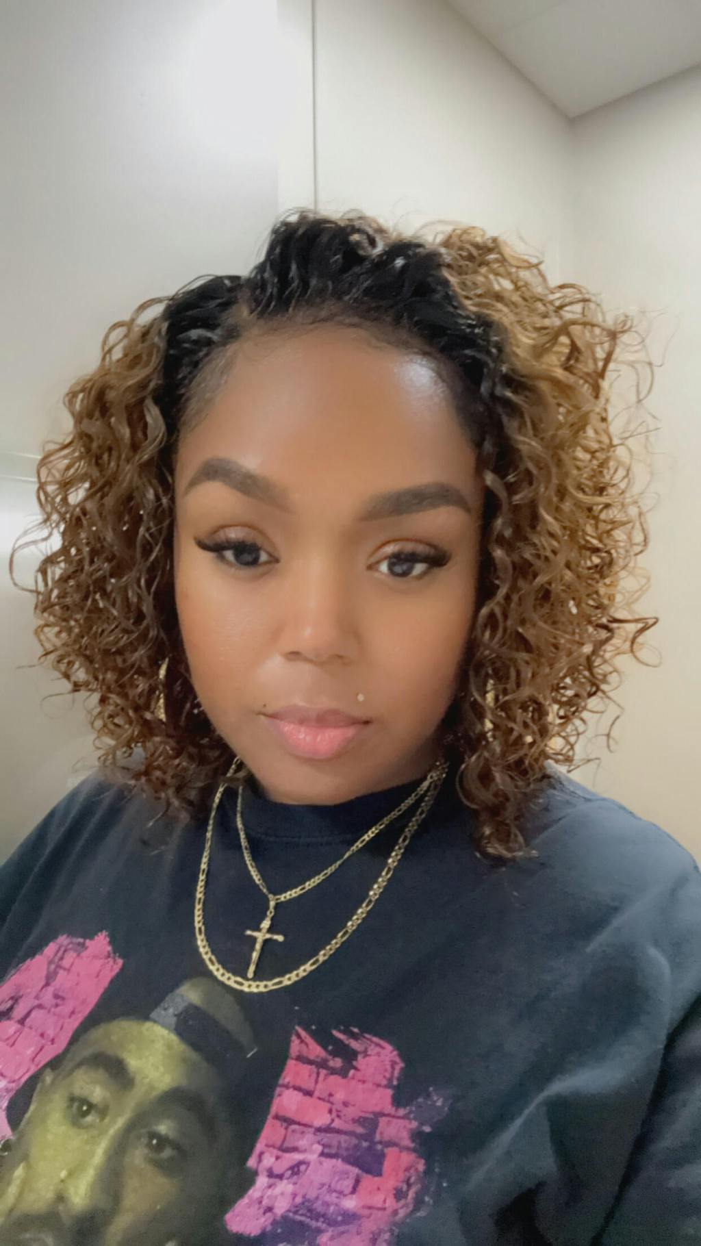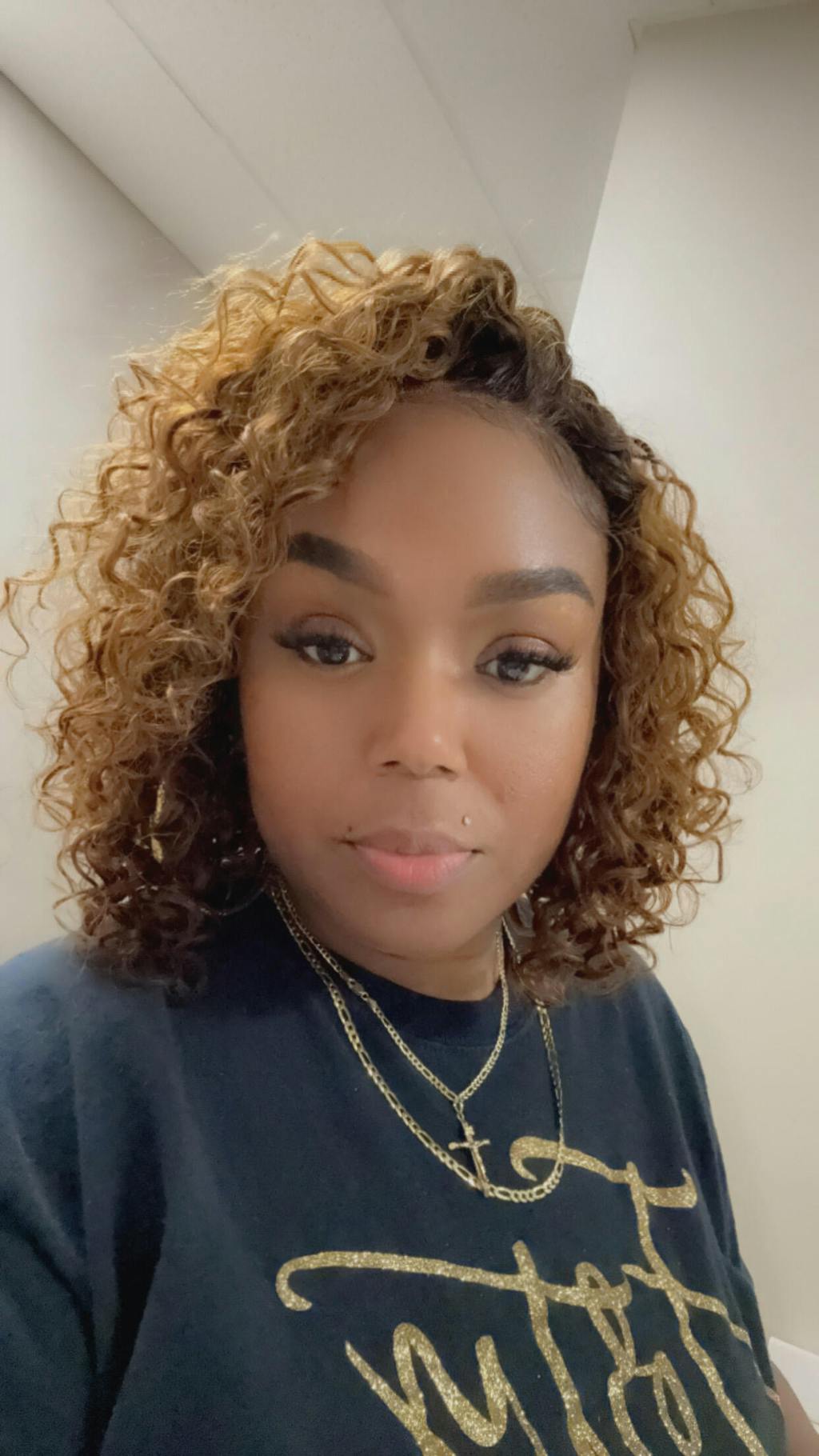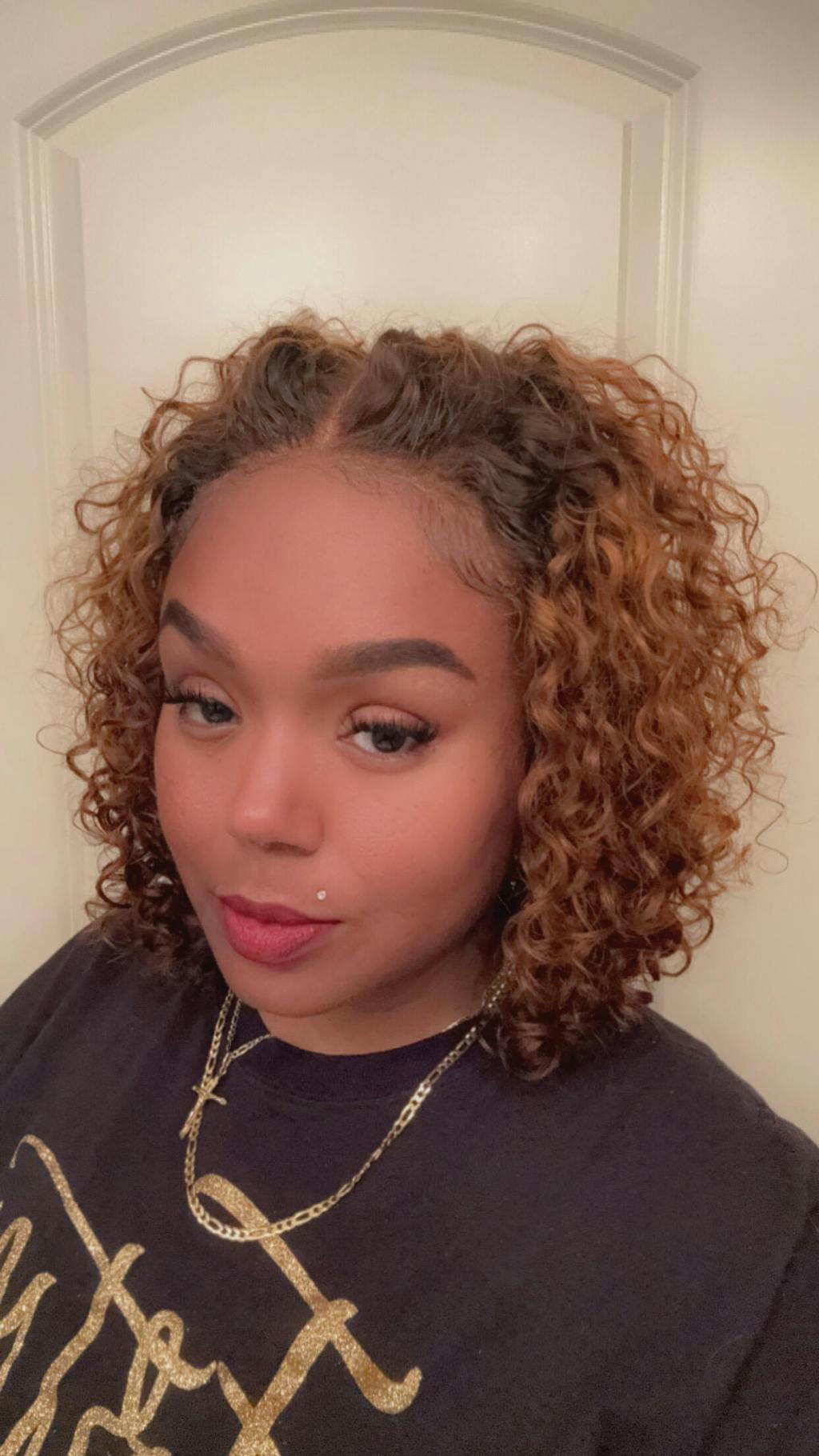 Warm Caramel Brown / Natural Black / Blonde Highlight Deep Curly Glueless 5x5 Closure Pre-Cut Lace Wig