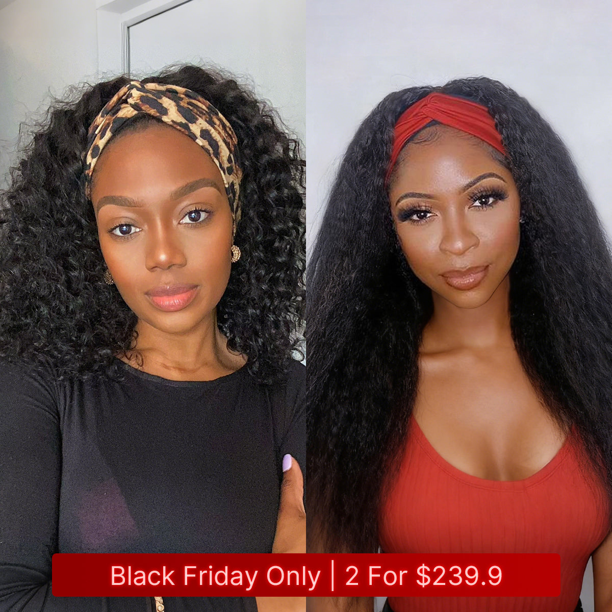 2 for $179.9 | 16 Inches Deep Wave No Lace Glueless Long Headband Wig + 20 Inches Kinky Straight Flexi-Fit Drawstring Glueless Headband Wig  - US Only-04