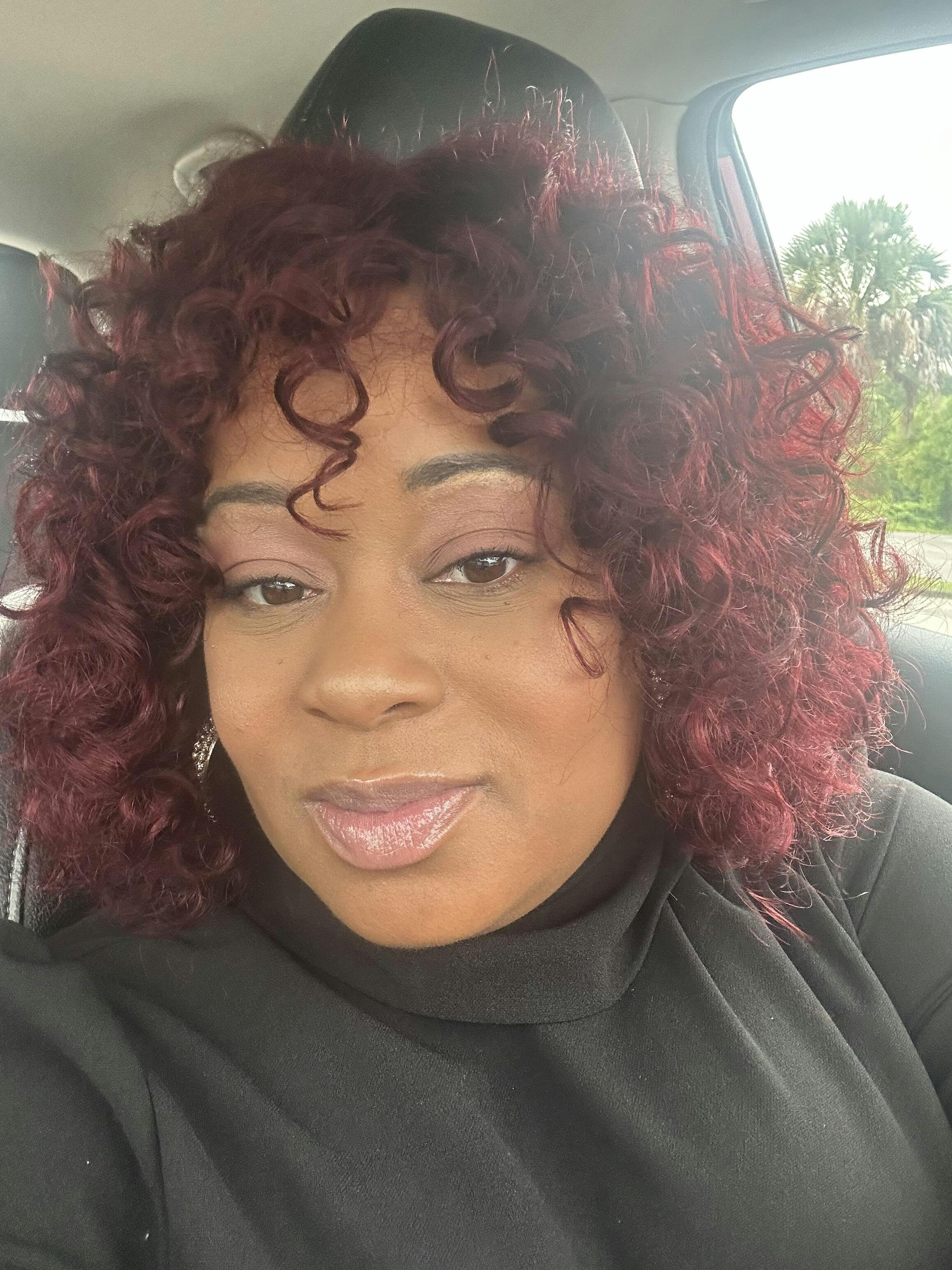 Beginner Friendly Dark Red Water Wave Glueless Minimalist Lace Curly Wig with Bangs-08
