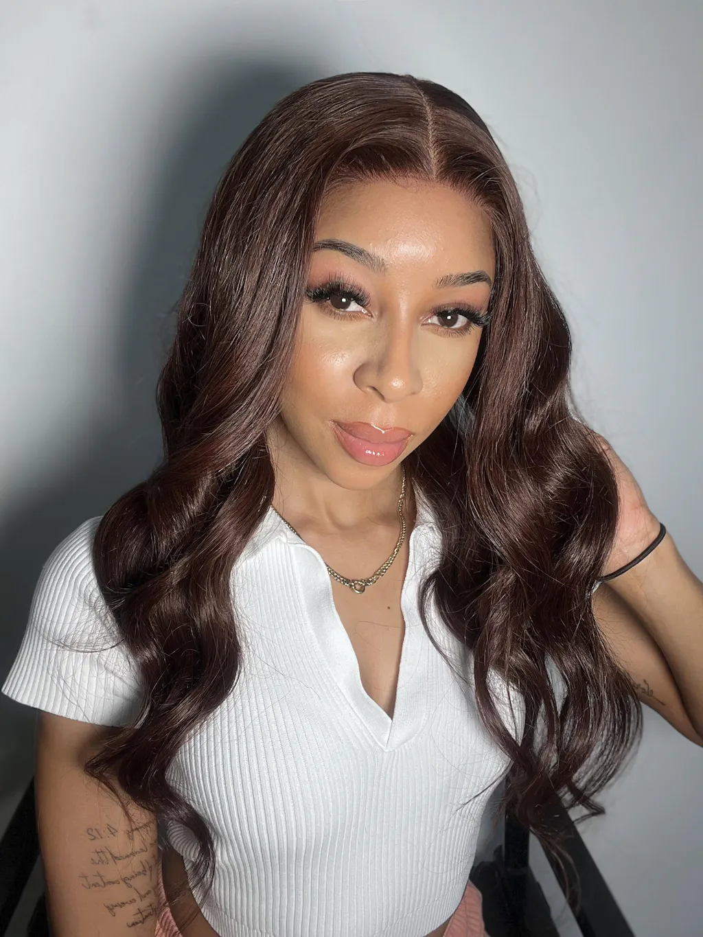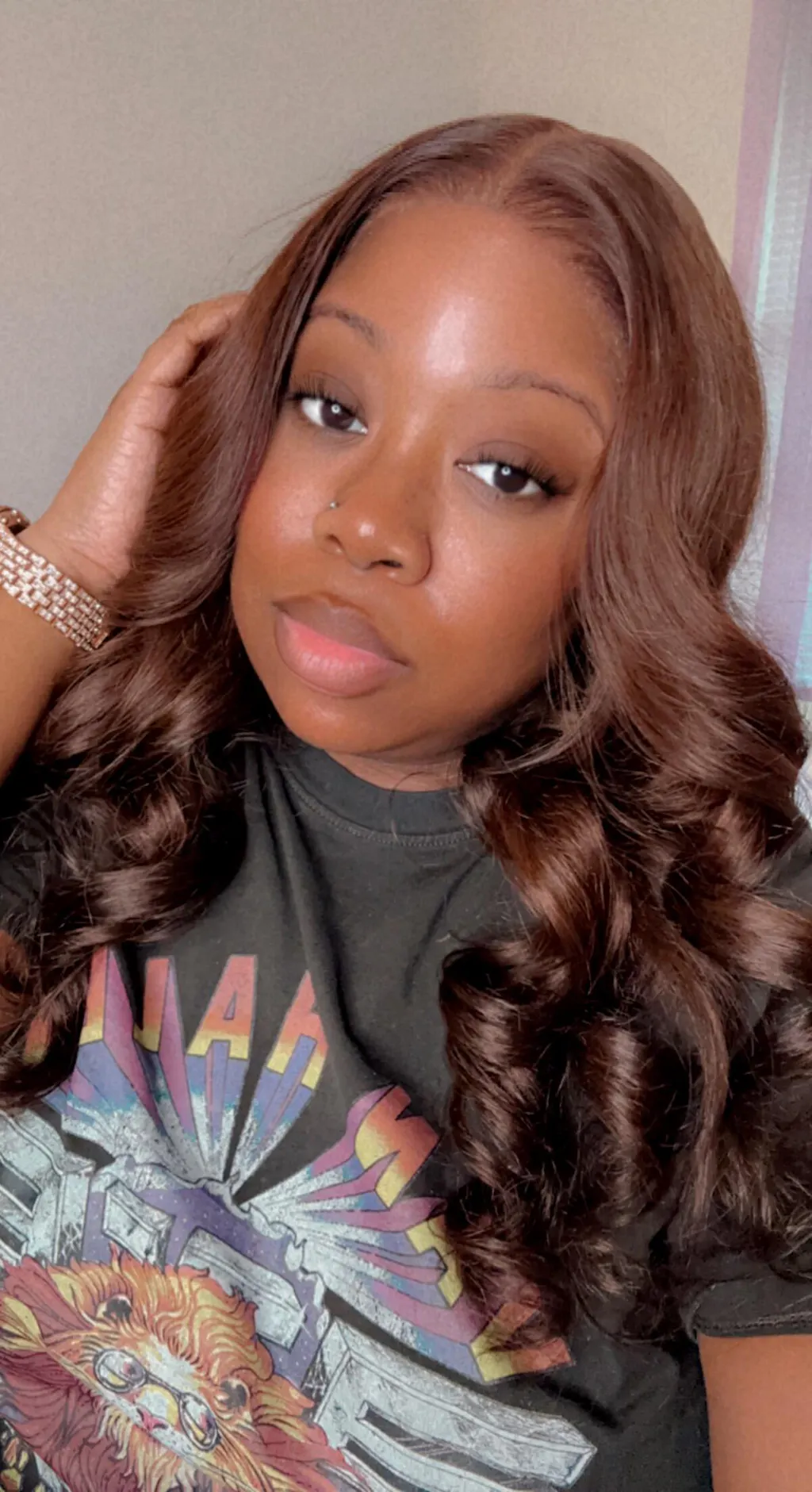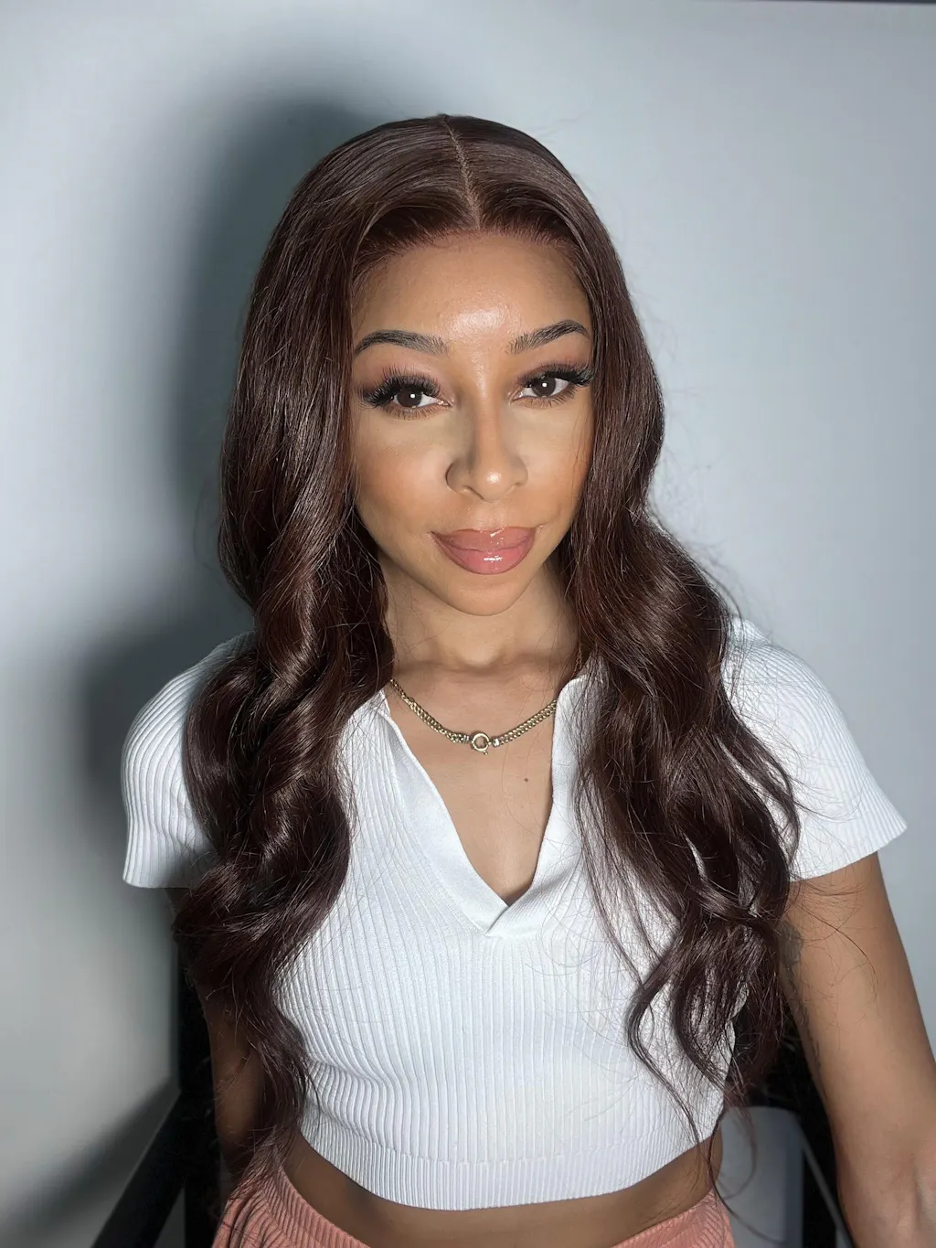 Chestnut Brown Loose Wave 5x5 Closure Lace Glueless Mid Part Long Wig 100% Human Hair - US Only
