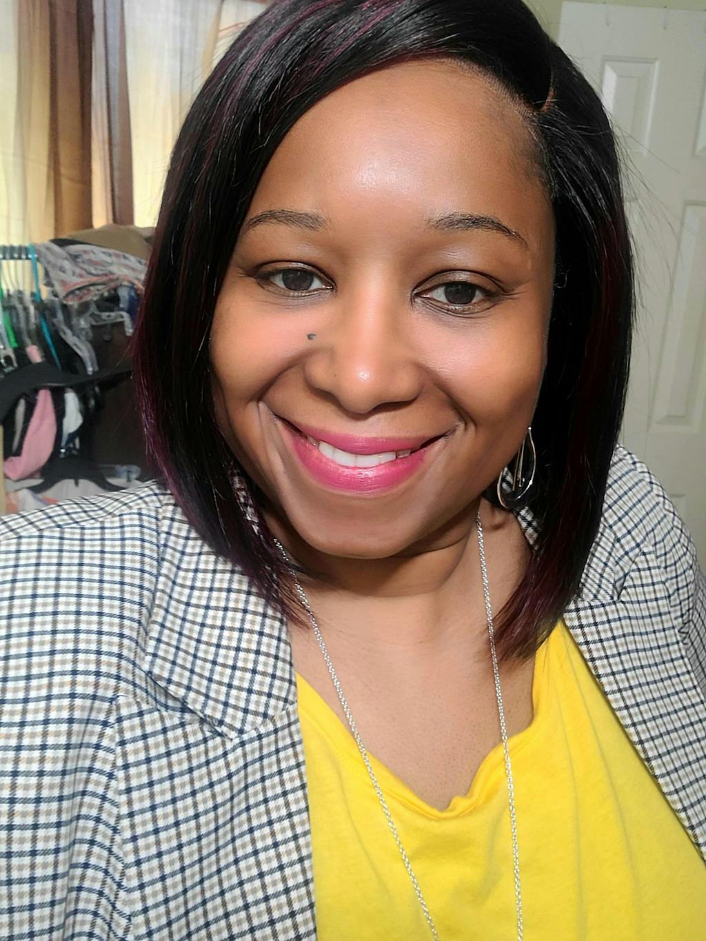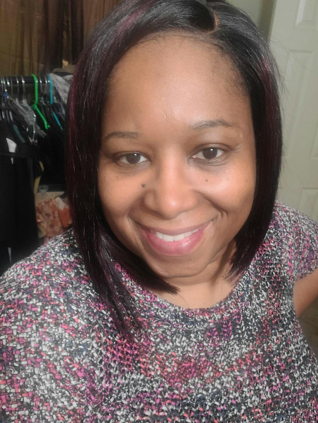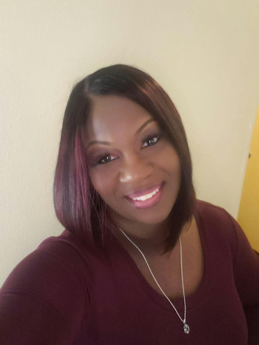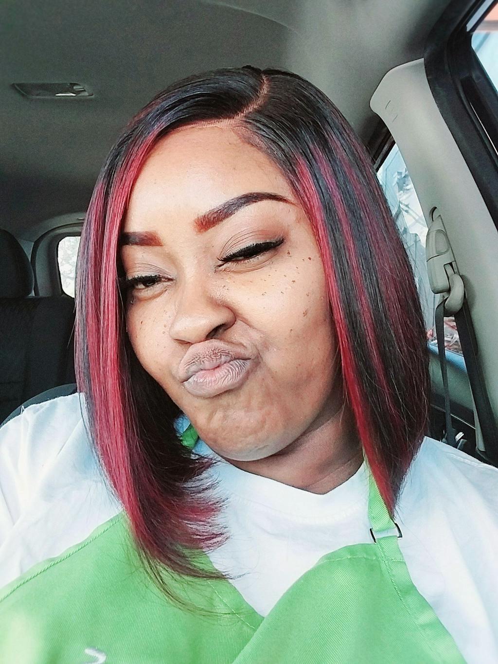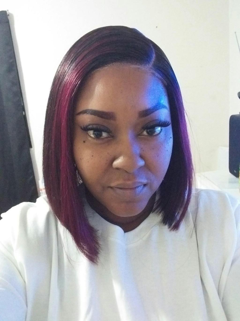 Dark Red Highlights Silky Blunt Cut C Part Glueless Minimalist HD Lace Bob Wig Beginner Friendly - US Only