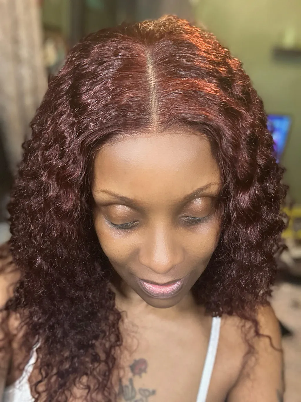 Dark Reddish Brown Fluffy Deep Wave Glueless 5x5 Closure Lace Wig - US Only-01