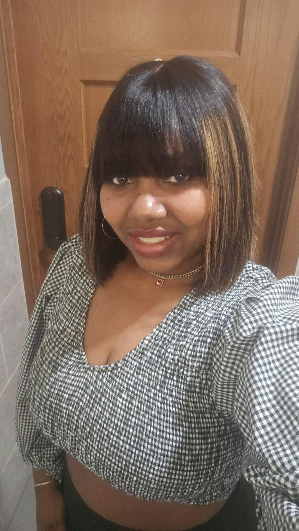Put On and Go Brown Highlight Yaki Bob with Bangs Glueless Minimalist Lace Wig Breathable Cap
