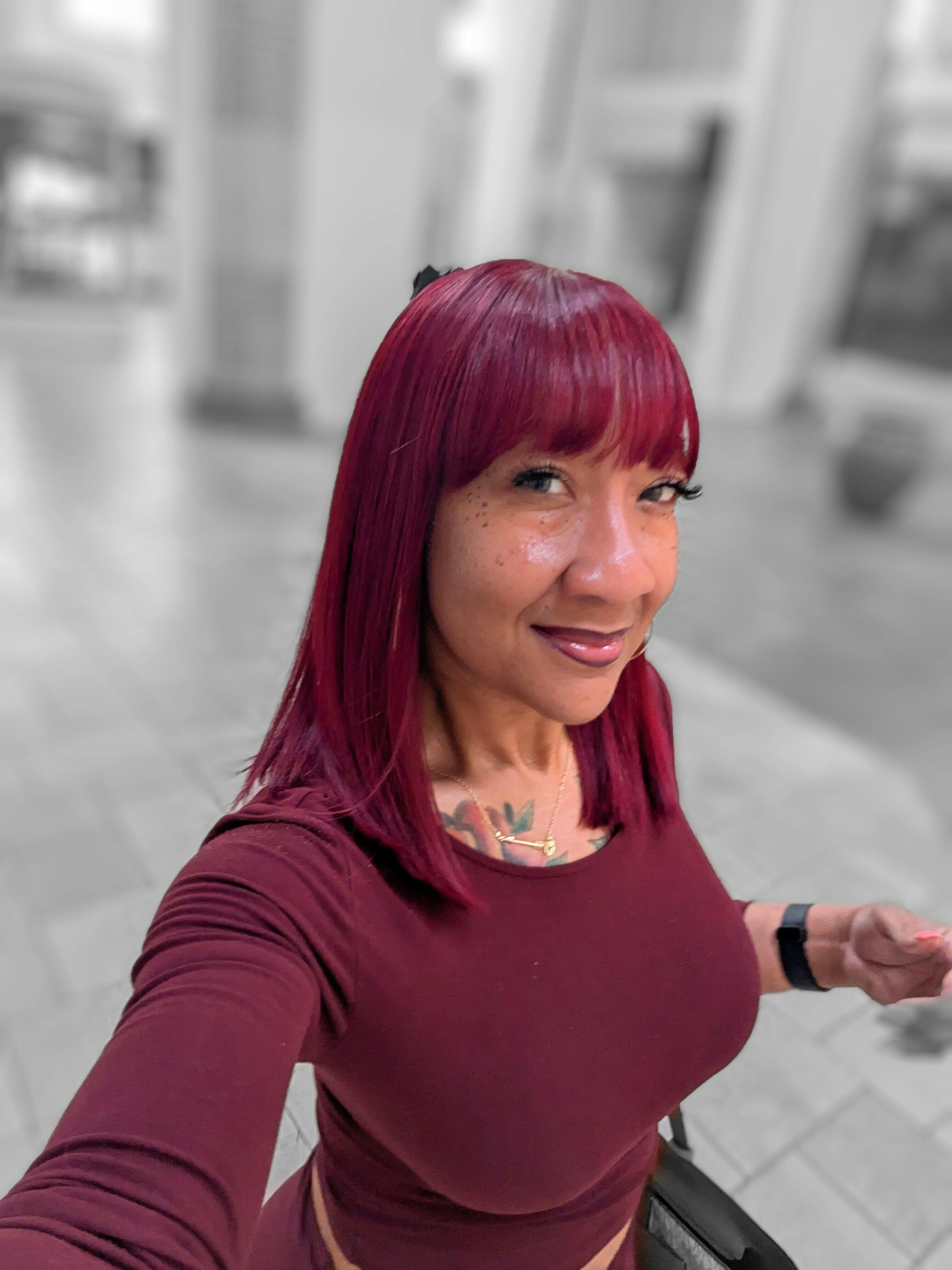 Crazy Wednesday | Put On and Go Reddish Purple / Brown Highlight / Natural Black Layered Cut Yaki Straight Minimalist Lace Bob Wig with Bangs-02