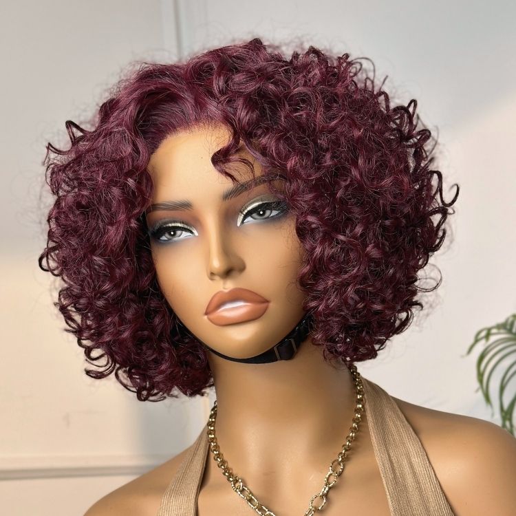 Trendy Burgundy Curly Bob Glueless Minimalist HD Lace T Part 99J Hair Color Wig 100% Human Hair-04