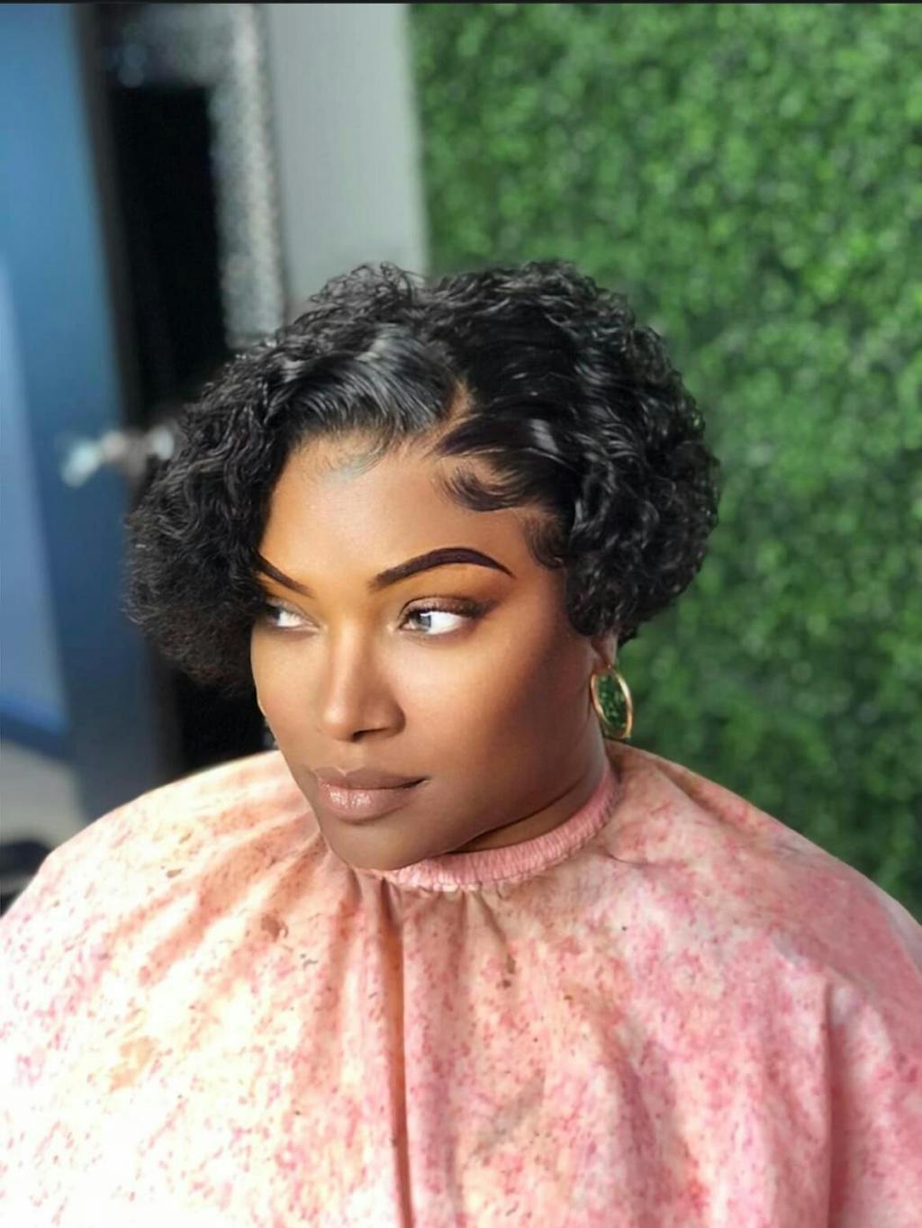 Ultra Natural Slicked Back Short Curly Wig Glueless Ear-to-ear Wide T Lace Front Wig